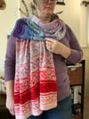 This wrap was made using 24 mini skeins from a holiday advent set from Yarn Over New York. I had so much fun opening up each little box every day in December. The set was themed around travel and each mini bore a name that was written in the language of the place that inspired the color. I was so smitten with the whole set that I immediately cast on a project with the first mini. I wanted to capture the idea of travel but keep the design simple and easy to come back to when the inevitable business of the holiday season creeps in. While the holiday season in 2020 will be very different for all of us knitting is a journey that we can take any time.