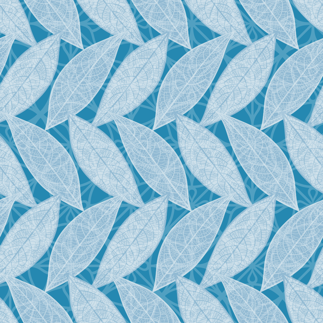 Blue Leaf skeleton vector repeat pattern. Abstract foliage seamless illustration background.