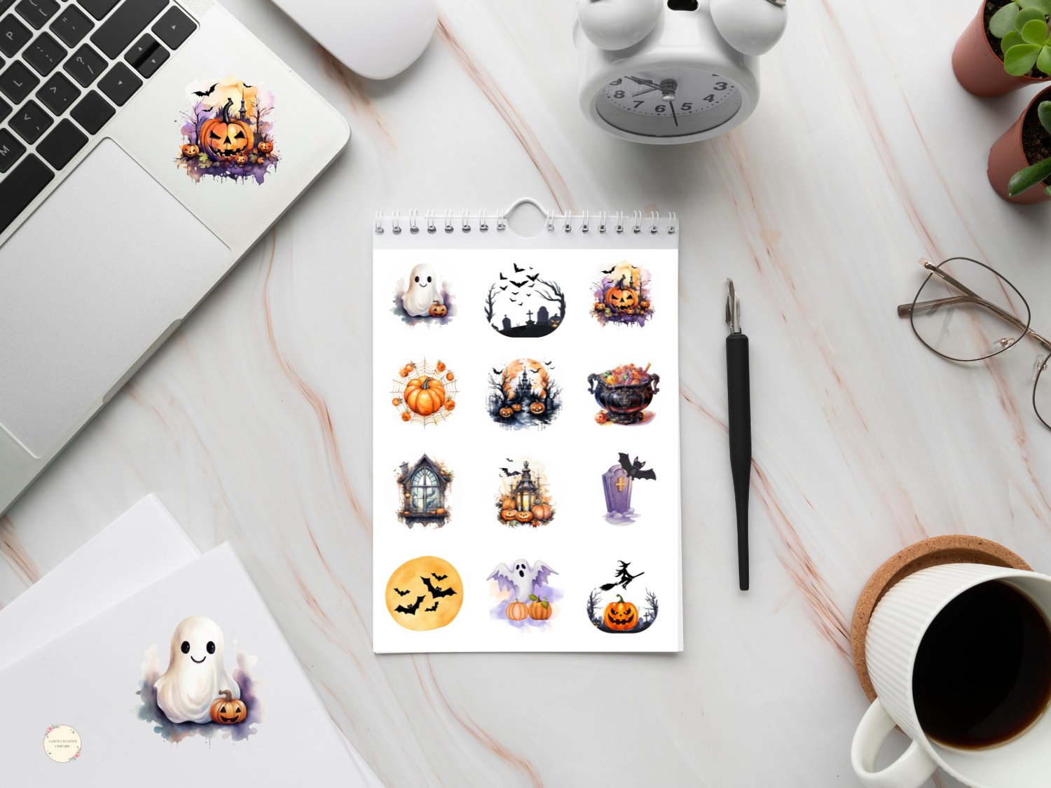 Watercolor Halloween Sticker Sheet β Pumpkins & Ghosts PDF & PNG