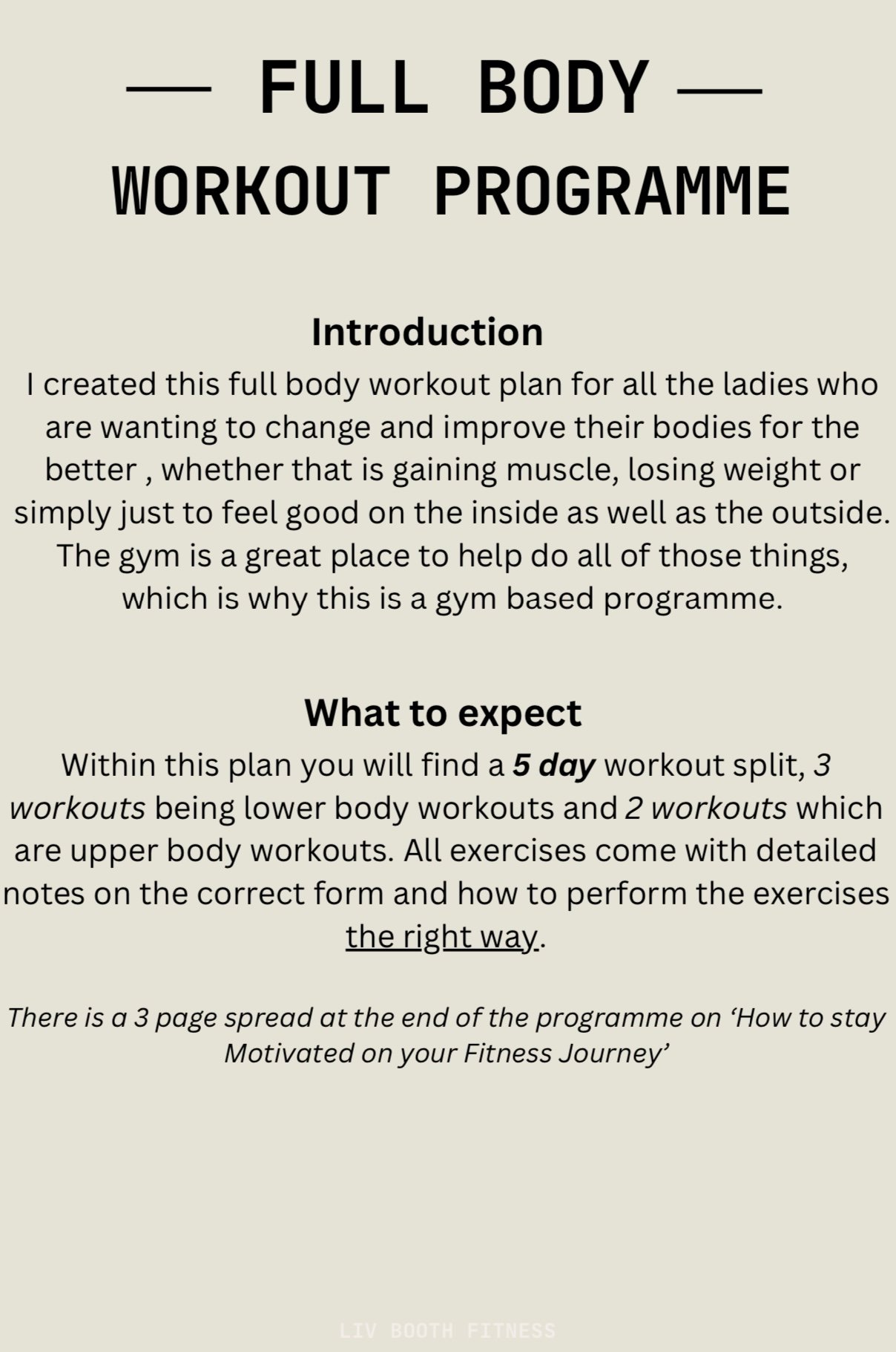 I created this full body workout plan for all the ladies who are wanting to change and improve their bodies for the better , whether that is gaining muscle, losing weight or simply just to feel good on the inside as well as the outside. The gym is a great place to help do all of those things, which is why this is a gym based programme.