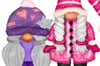 Gorgeous hand painted gnomes; 4 girls and 4 boys, each with detailed hats and clothing. Plus 2 FREE backgrounds in square and round for you to make up your own Christmas family or friend scene.