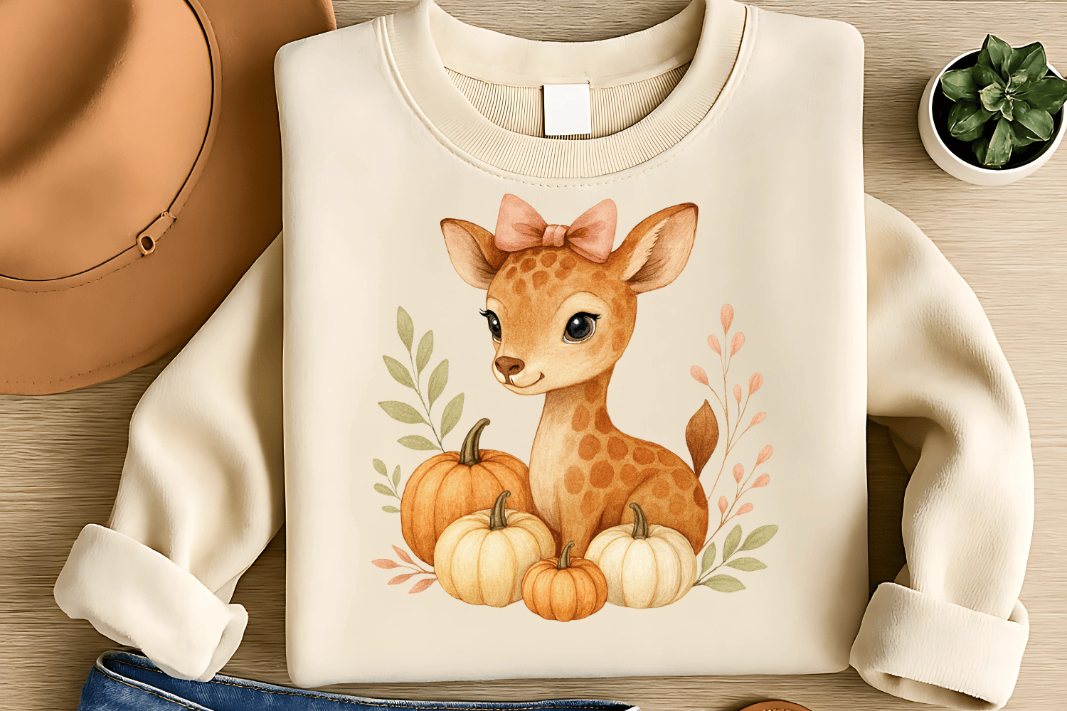 Baby Reindeer Autumn Sublimation PNG – Cute Fall Giraffe Clipart for T-Shirts – Cozy & Playful Seasonal Design – 300 DPI Instant Digital Download