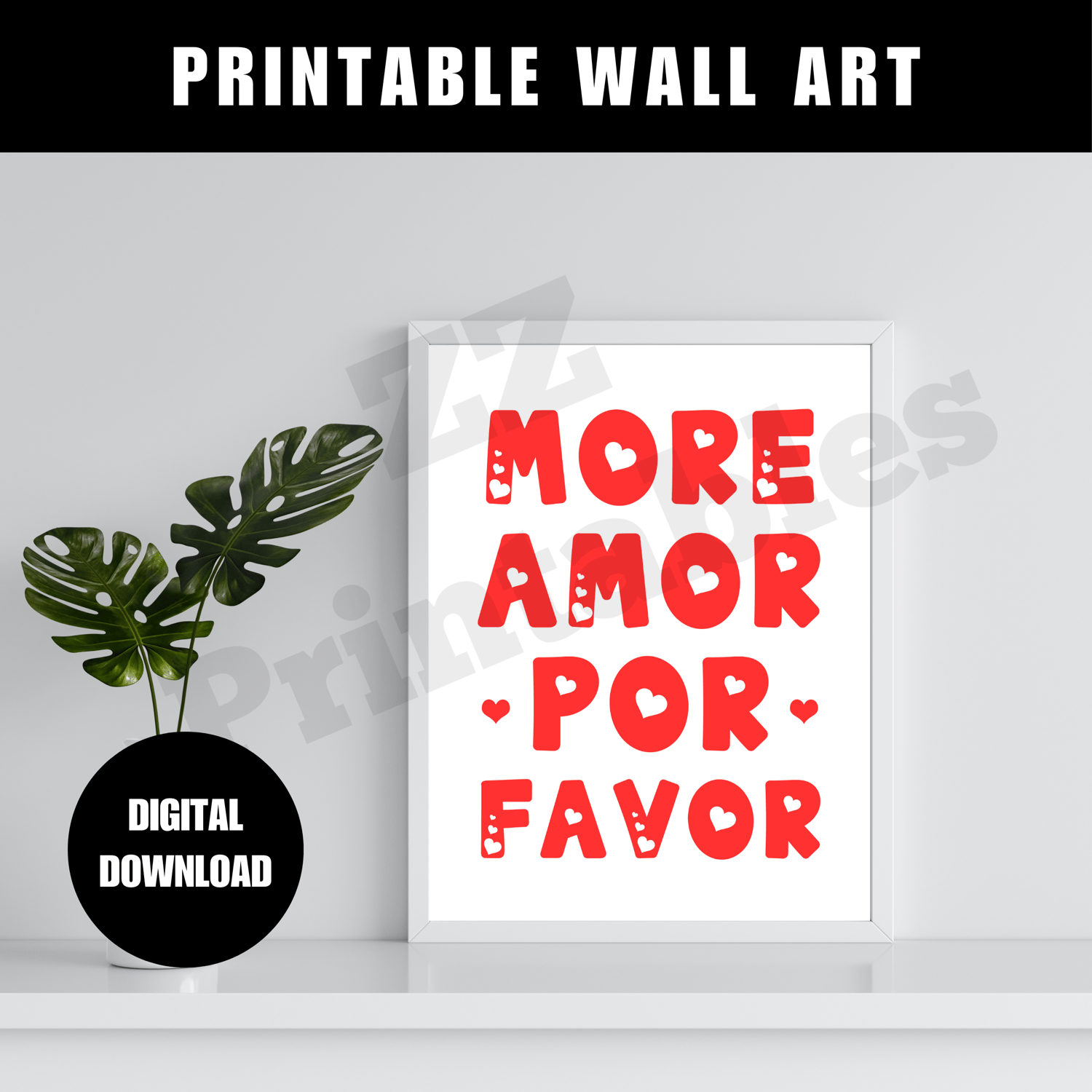 More Amor Por Favor Valentines Day Print Poster Trendy White Red Typography Text College Dorm Decor Printable Wall Art Digital Download JPEG. The design comes in 5 different sizes. The digital download consists of a zipped file containing 5 high quality JPEG files (300 dpi) and a PDF size chart to help you choose the right file for the printing size you want.