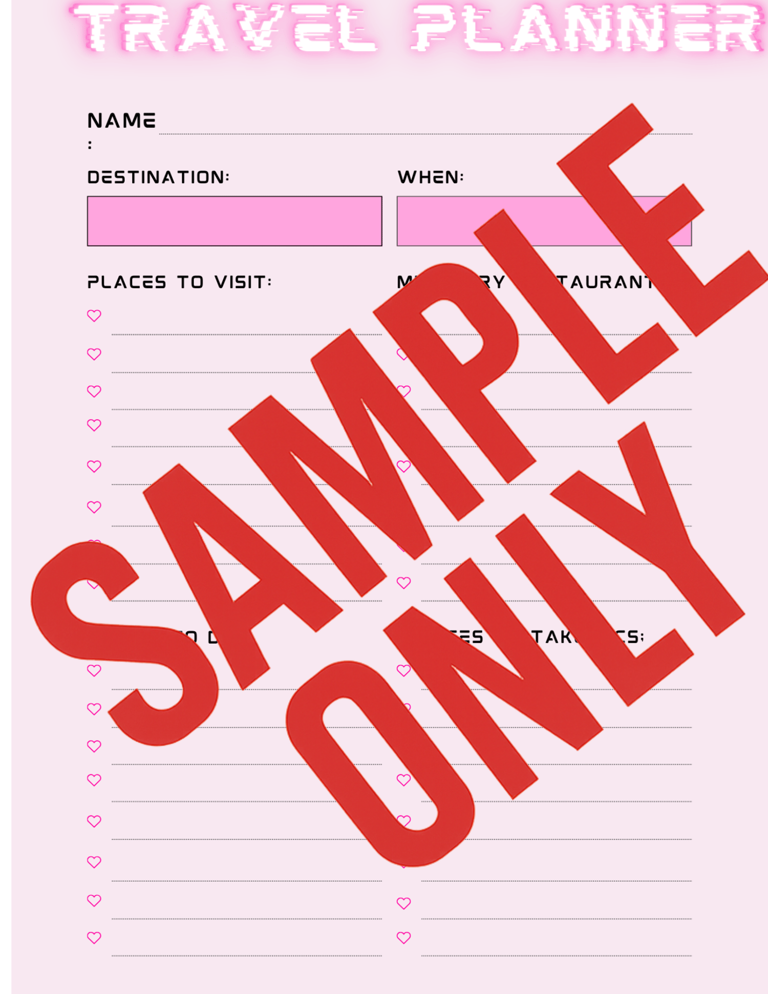 Planning your next ✈️ baddie escape? This aesthetic travel planner is exactly what you need to organize your dream trip — without losing the fun, girly vibe. Whether it’s a weekend getaway or a full glam tour, this sheet keeps your itinerary cute, clean, and on-point.