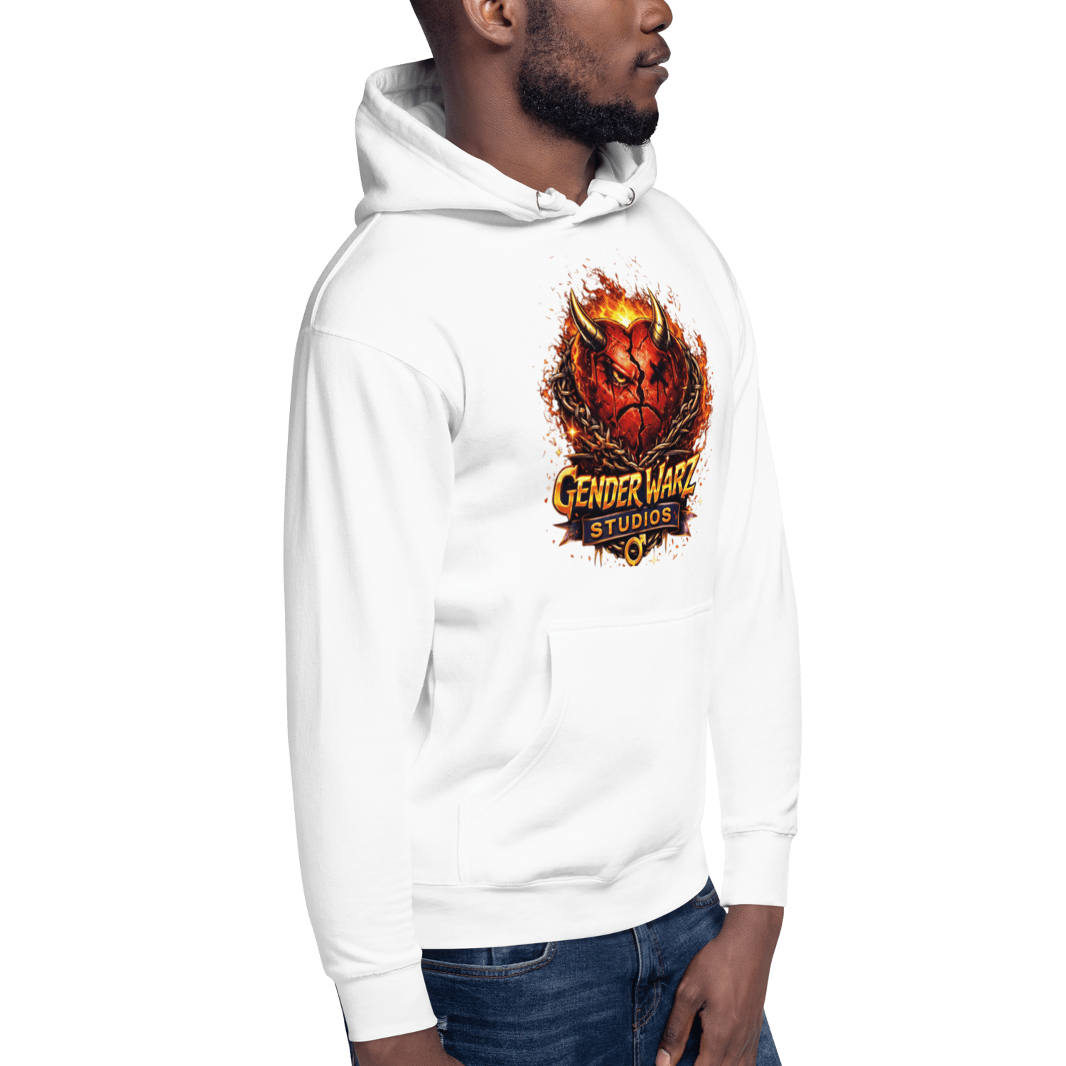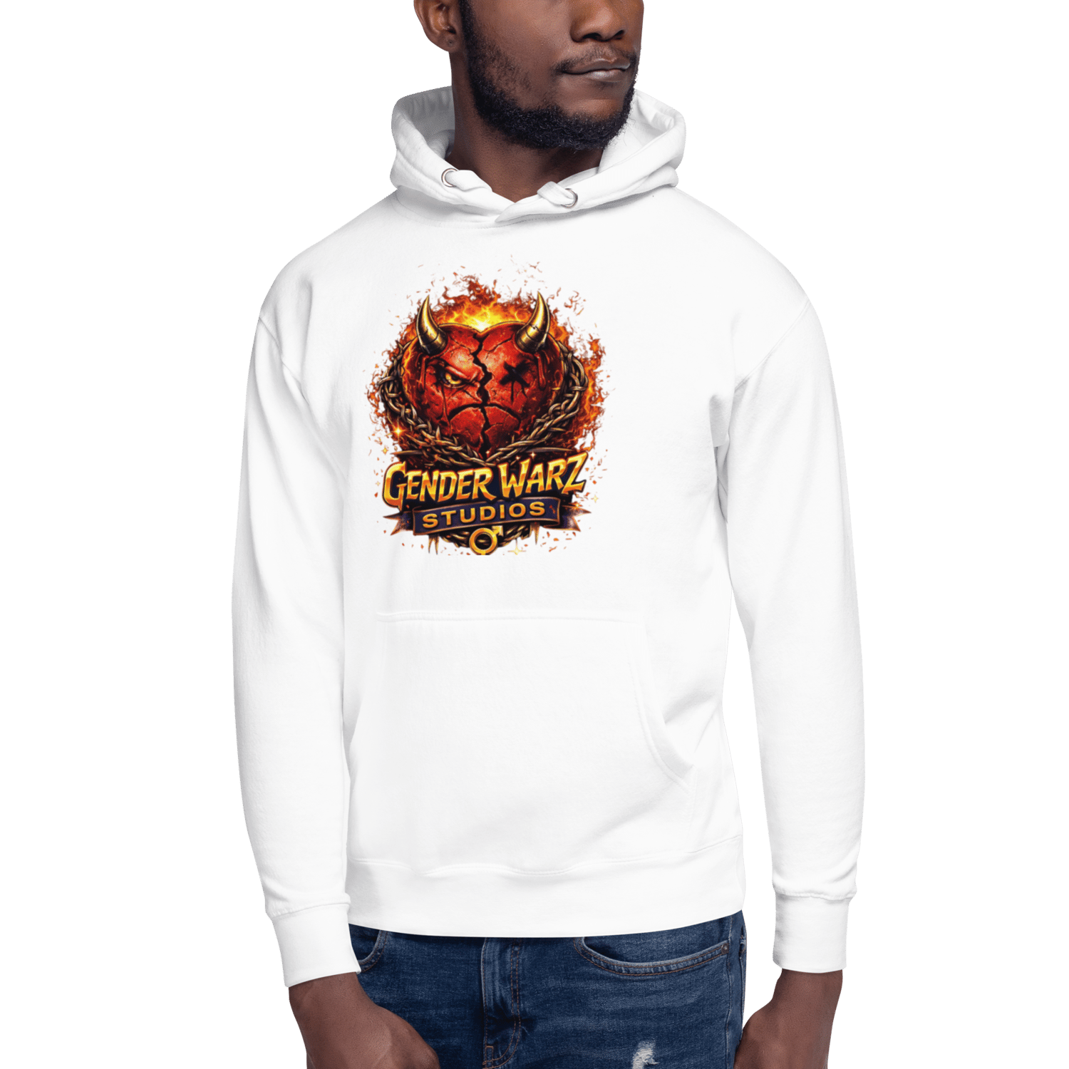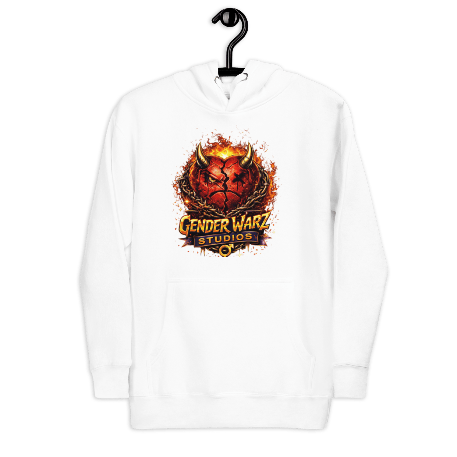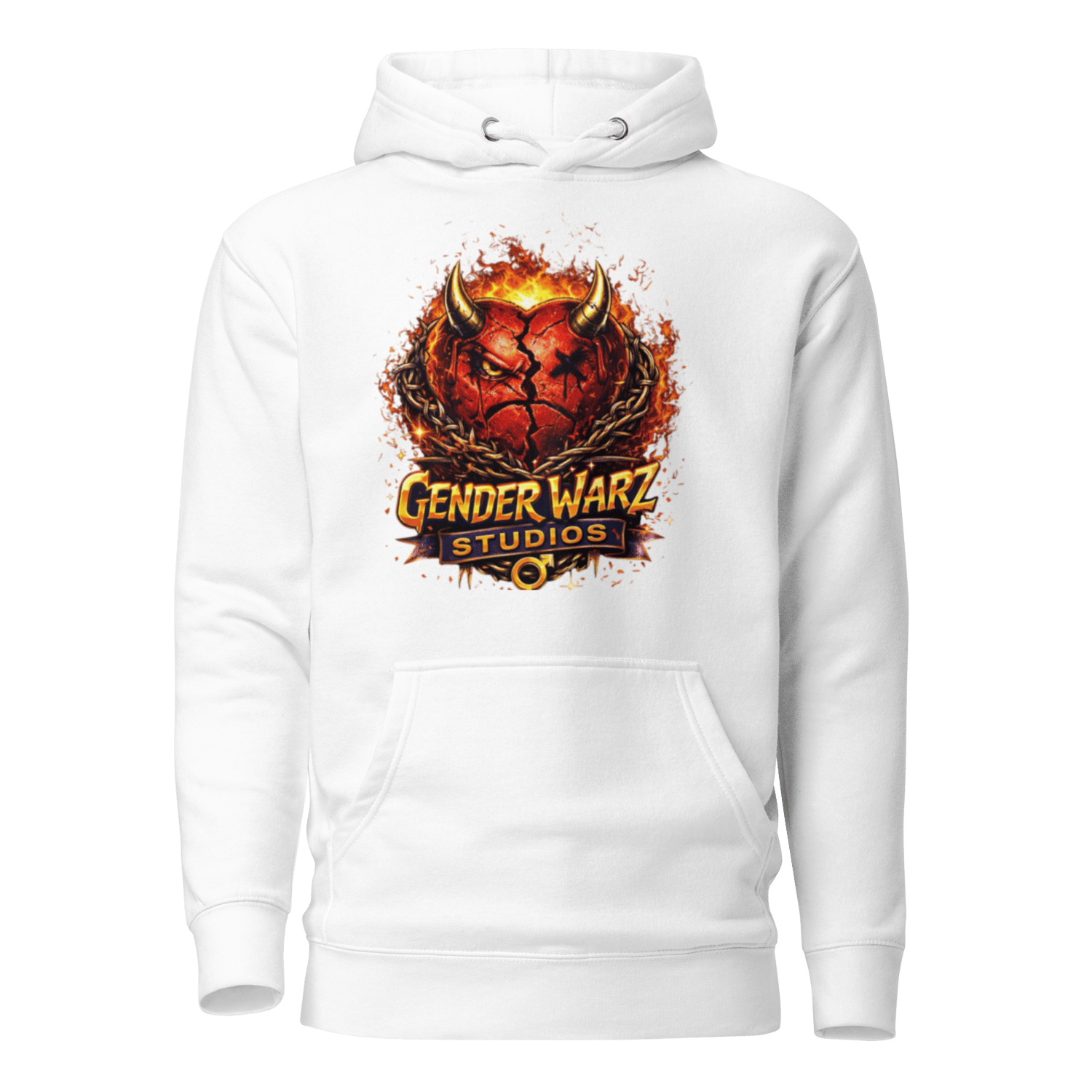 The Gender Warz White Hoodie features the iconic No Love No Heart emblem, symbolizing scars turned into strength and emotions worn without apology. Set against a crisp white canvas, the heart logo hits harder, standing out bold, raw, and unmistakable.