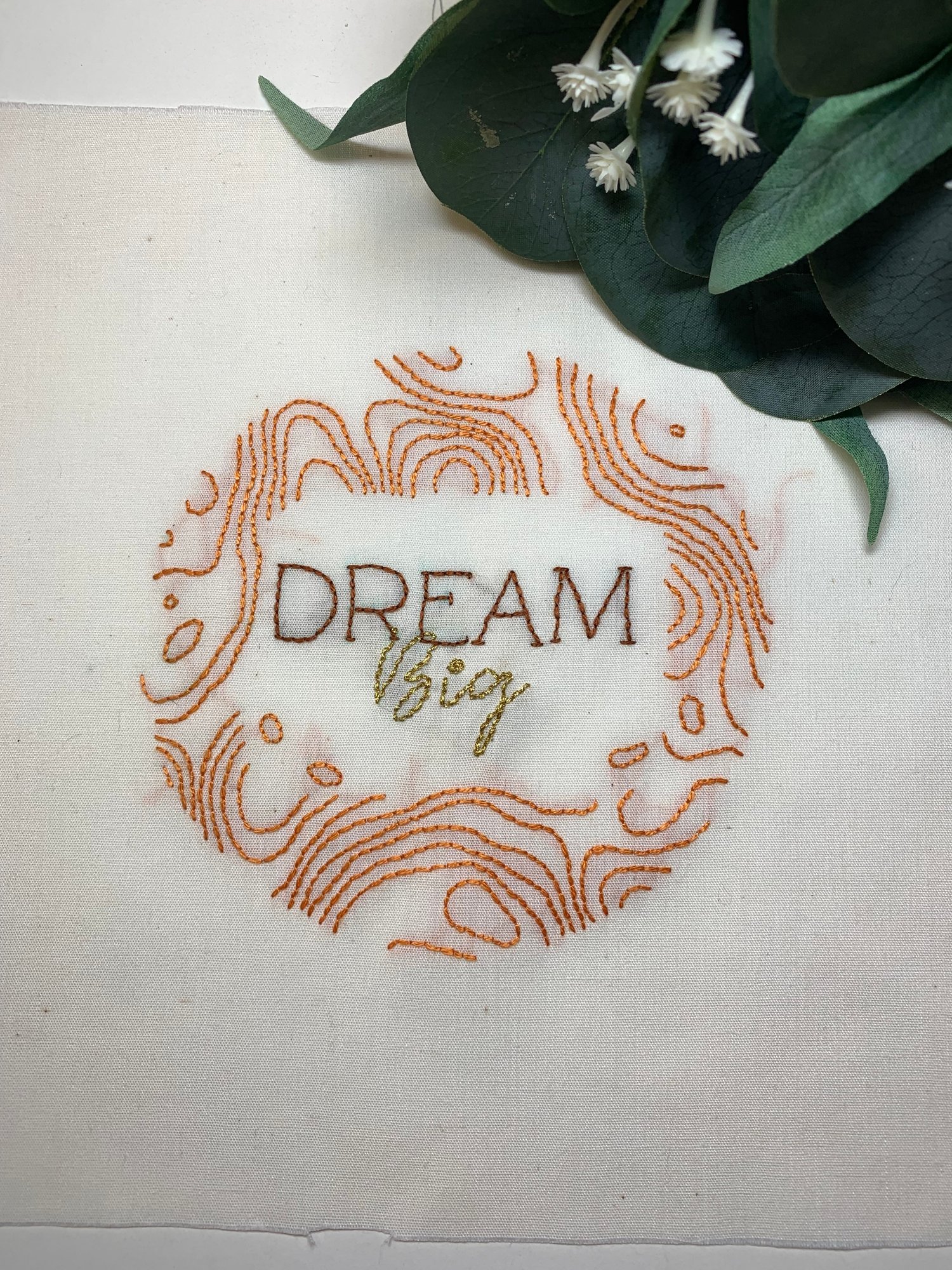 Bring inspiration into your home with this uplifting "Dream Big" embroidery pattern, featuring warm fall colors perfect for autumn. This easy-to-follow PDF pattern includes everything you need to embroider the phrase "Dream Big" in a whimsical lettering style.