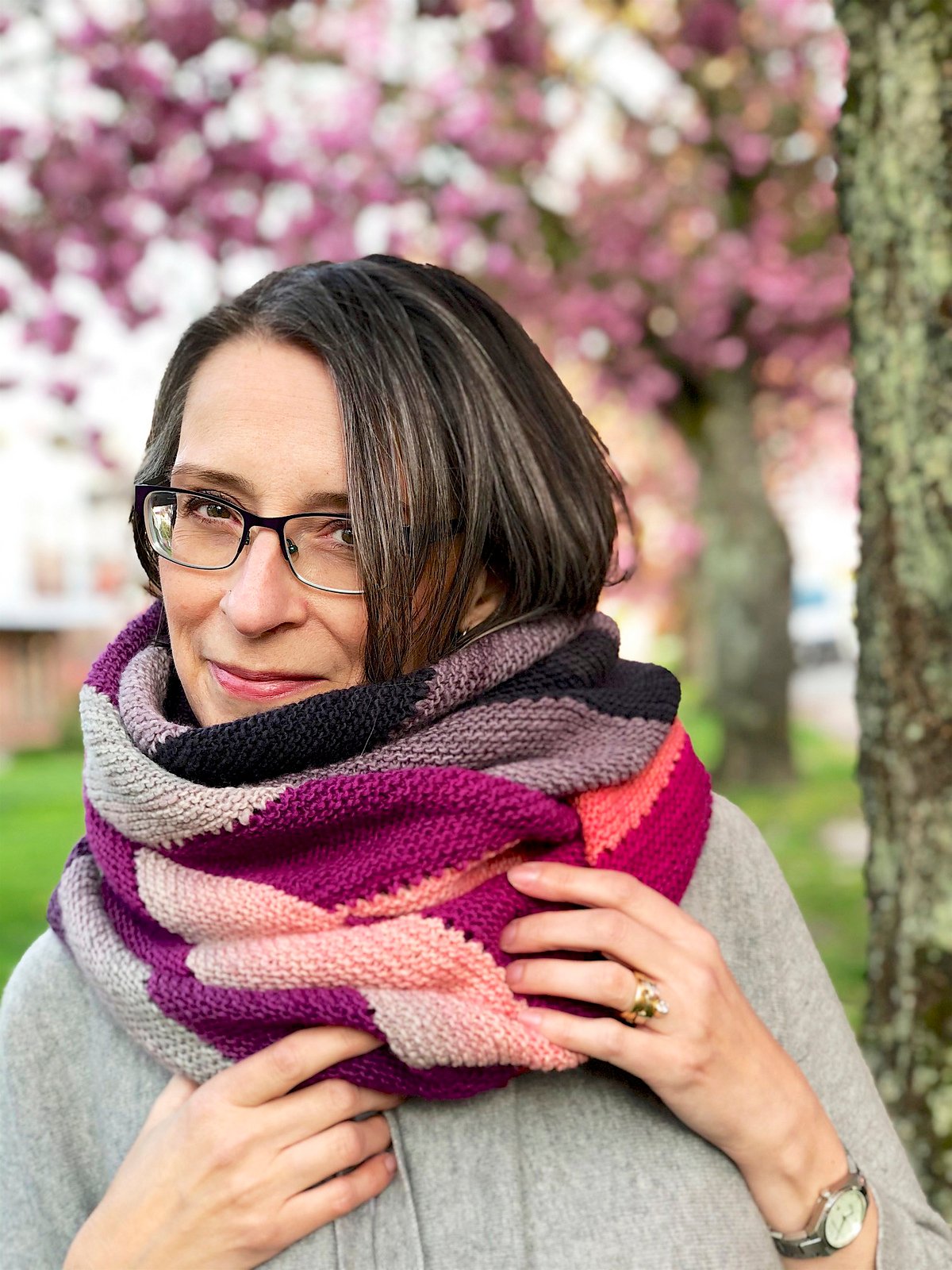 Choose a fingering weight (or sock yarn) ombré or gradient yarn in two colourways. It would also look great with two solid/tonal yarns or a solid colour paired with a gradient yarn. The yarn specified in the pattern is a single ply merino, but multi-plied yarns and a full range fibres would also be great. They key for this project is the colour choice.
