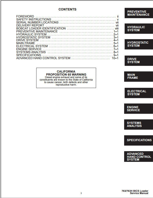1997 Bobcat 763 Skid Steer Loader Service Manual