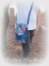 This sweet bag my be small, but it has lots of features, such as a phone pocket on the back of the bag, which provides easy access to slide in the phone and retrieve it when needed. On the front under the flap is a pocket for your keys. Inside is a card pocket that will hold 2-3 cards. The interior space will hold whatever you want like a glasses case, etc. The flap closes with a magnetic snap.