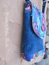 I got creative with this bag and made the flap, top, bottom and inside card holder artsy by using scraps and lots of quilting! I added embellishments on the flap such as buttons, crystals and couched some yarn too. The center of the bag is made with hand dyed fabric that I also quilted with a variegated thread. This is truly a one-of-a-kind bag!!!