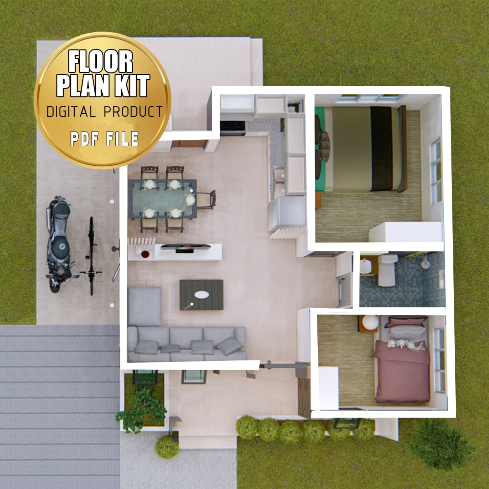 FLOOR PLAN ONLY (PDF File), 7 x 7 meters with 2 Bedroom