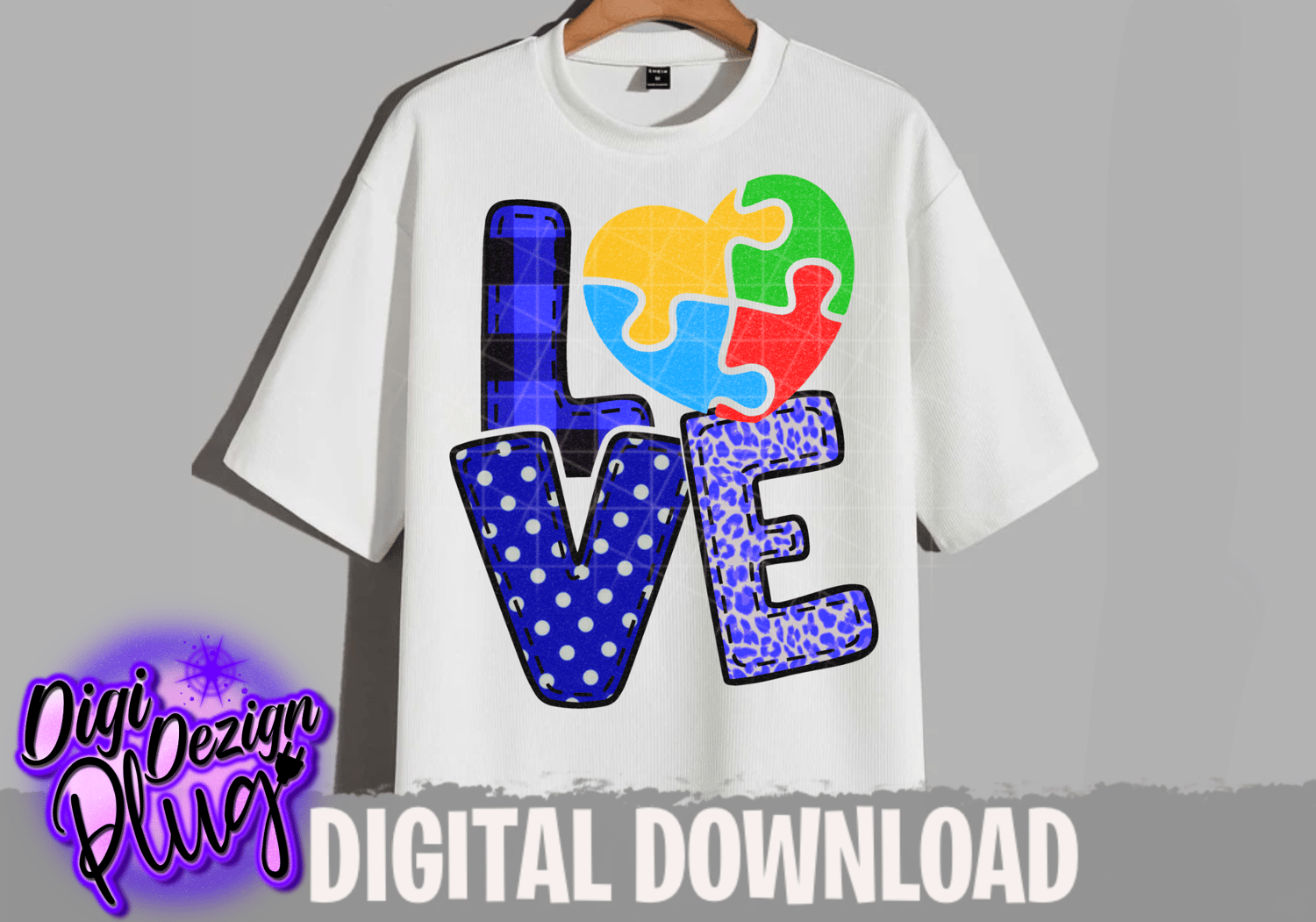 Autism Love Puzzle Piece Heart Png- Digital Download