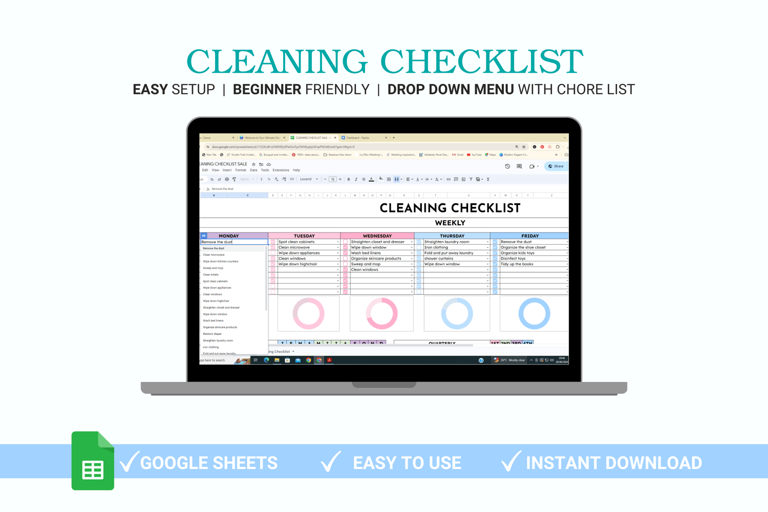 EDITABLE Cleaning Schedule Planner SpreadSheet Template for Googlesheet, Digital Weekly Cleaning Checklist, Family Kids Chore Chart List, Household Cleaning Printable PDF