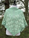 Ronceverte is a classic, top-down triangular shawl. The shawl has a stockinette body and a lace edge.