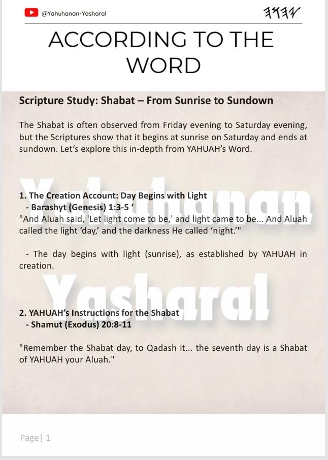 According to the Word: The Shabat Day, From Sunrise to Sundown
