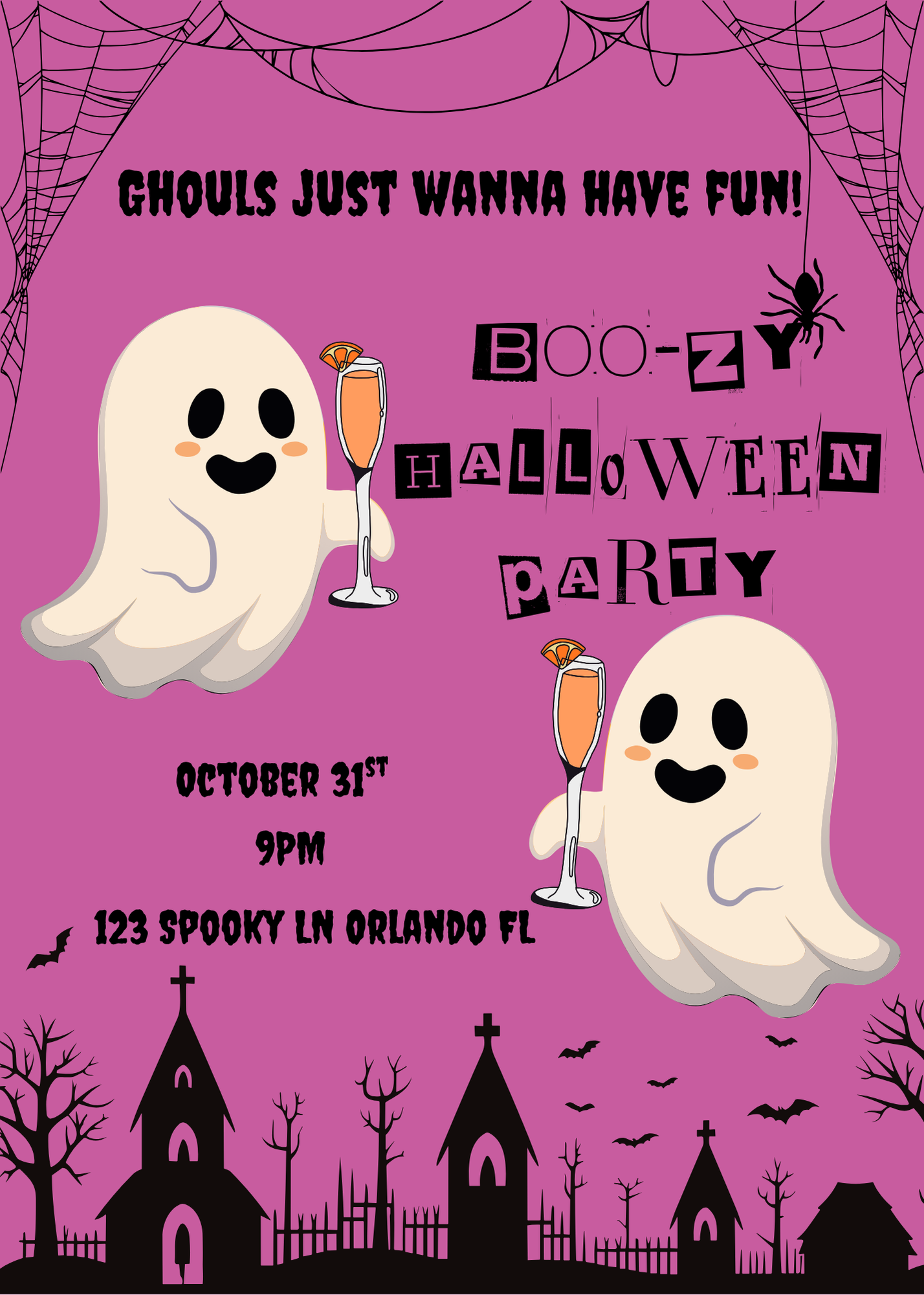 Forget the cute and cozy—we're talking about a boozy, adults-only celebration! The design is a playful, spooky-chic tribute to the classic "Ghouls Just Wanna Have Fun" theme, but with a clear indication that the drinks will be flowing. It's bold, fun, and instantly tells your guests this isn't your average potluck.