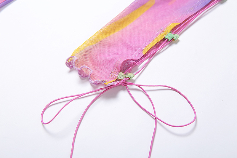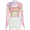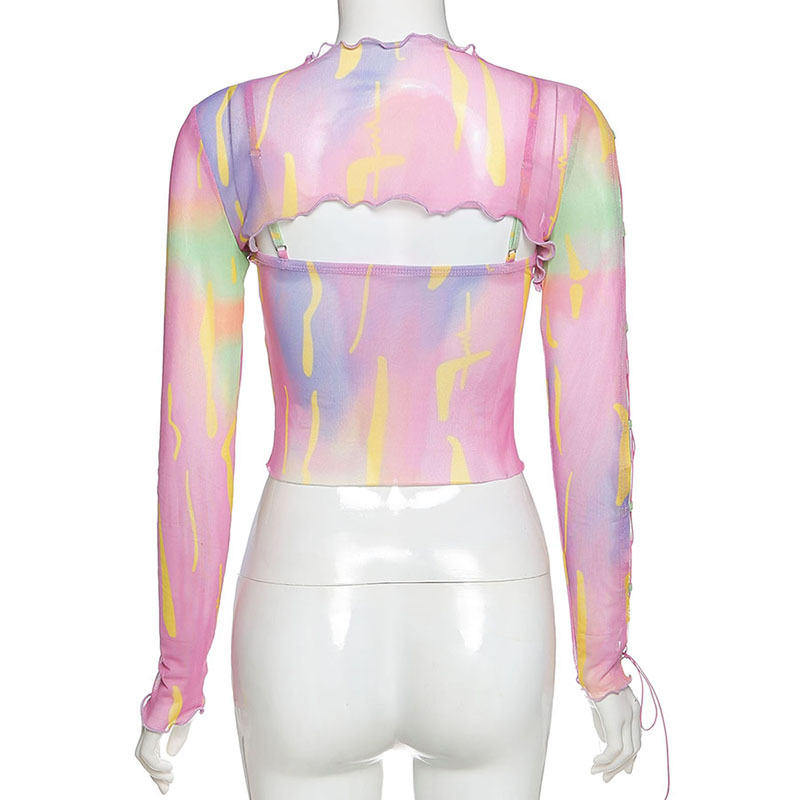 Subcultural niche design colorful camisole tie cuffs longsleeve mesh two-piece set
