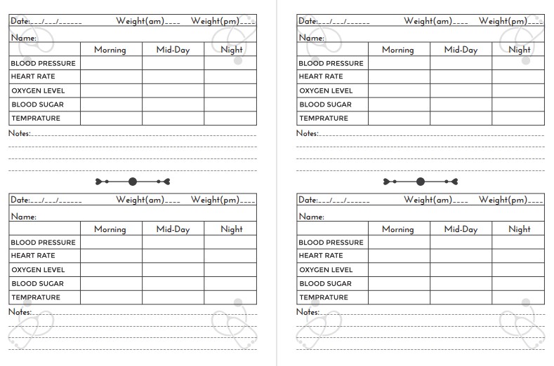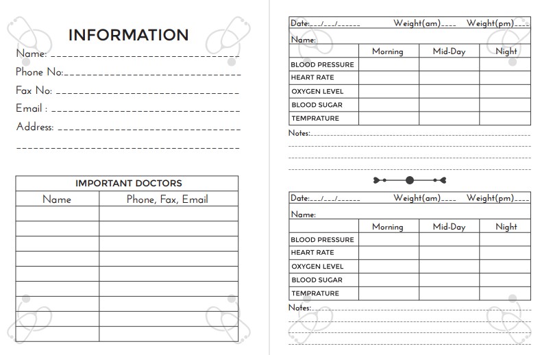 A Perfect log for yourself or a friend, or any member of your family, to track heart rate, blood pressure, Blood Sugar, Temperature, Oxygen level & Weight for Excellent Health.