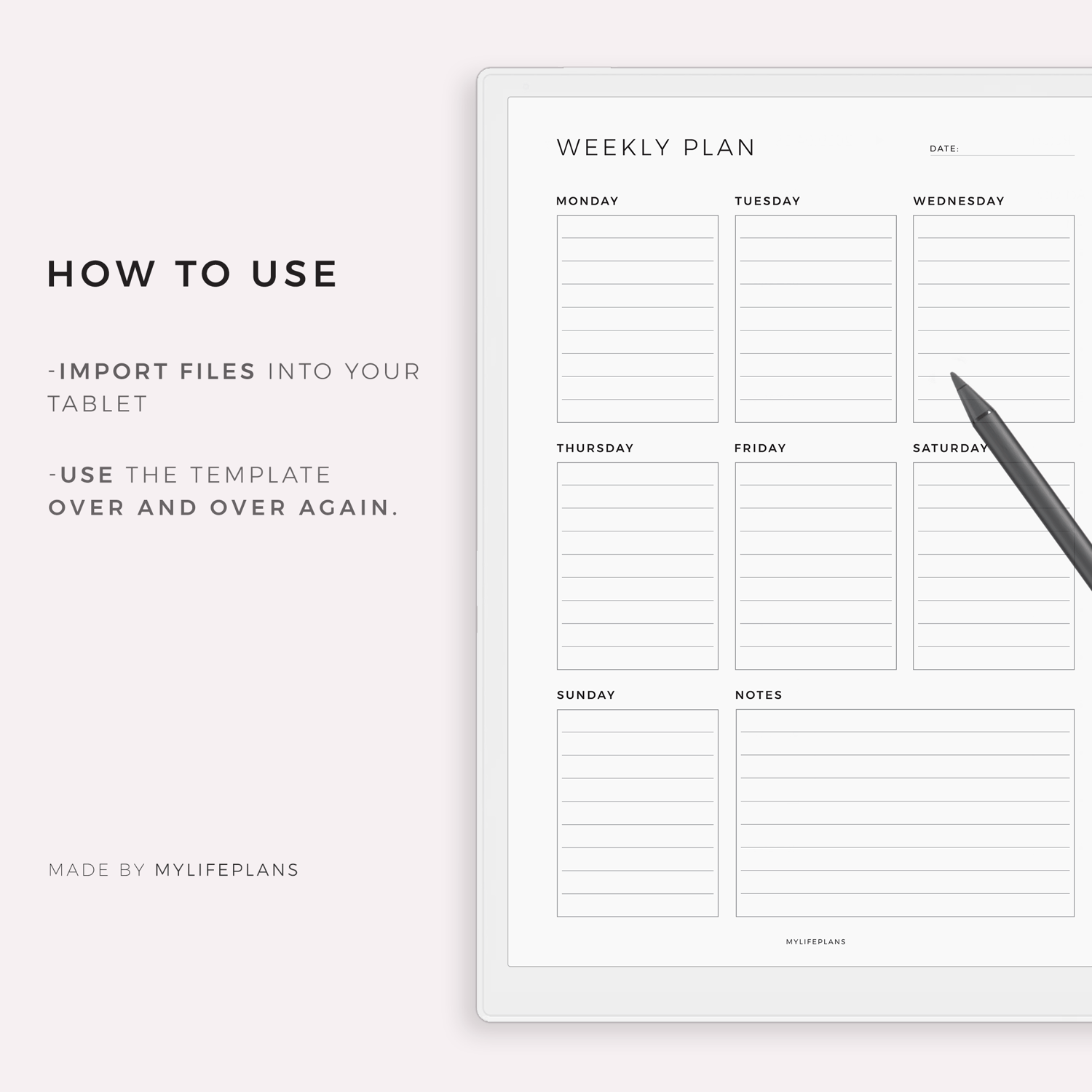 Weekly Planner – A modern, minimalist template that works seamlessly with a wide range of e-ink devices. Simply download, import, and start using it right away.