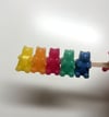 Contains 5 Gummy Bear Squishies (yellow, orange, red, green, blue).
