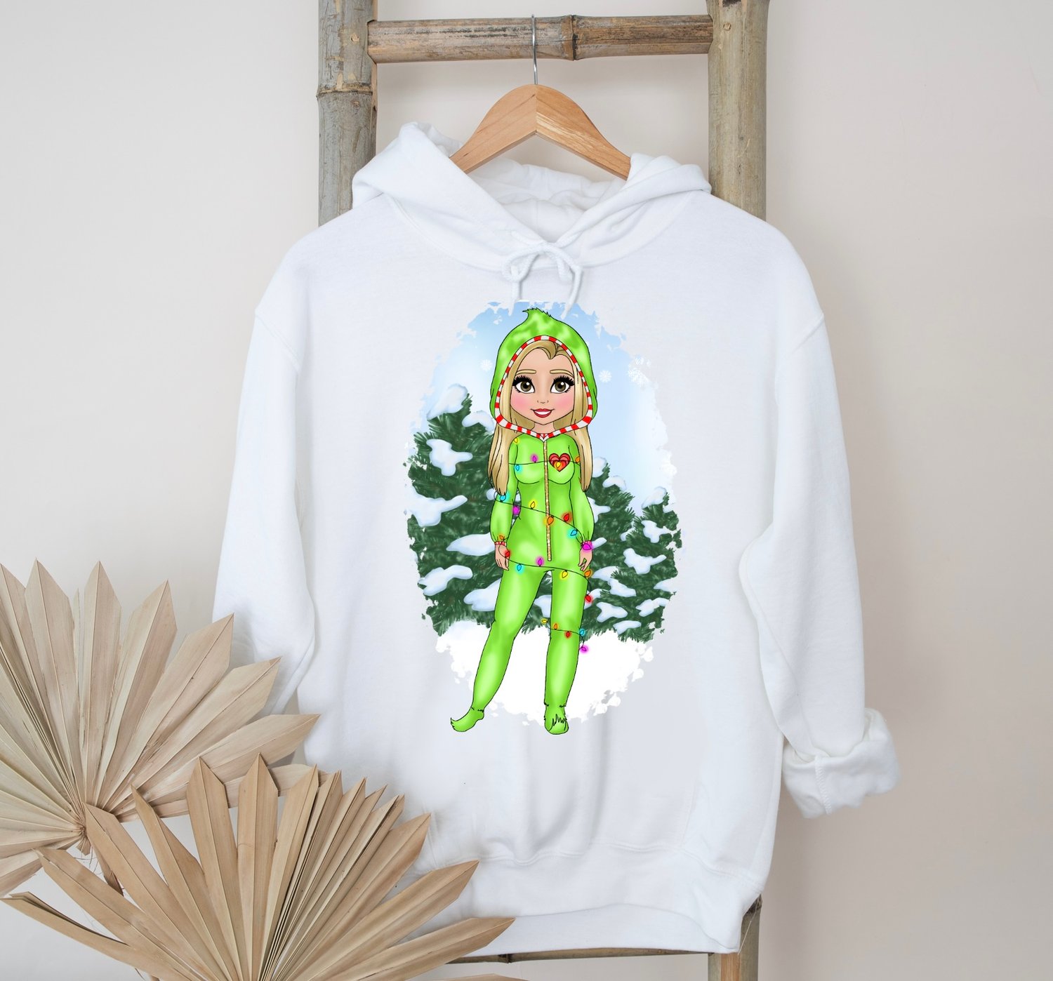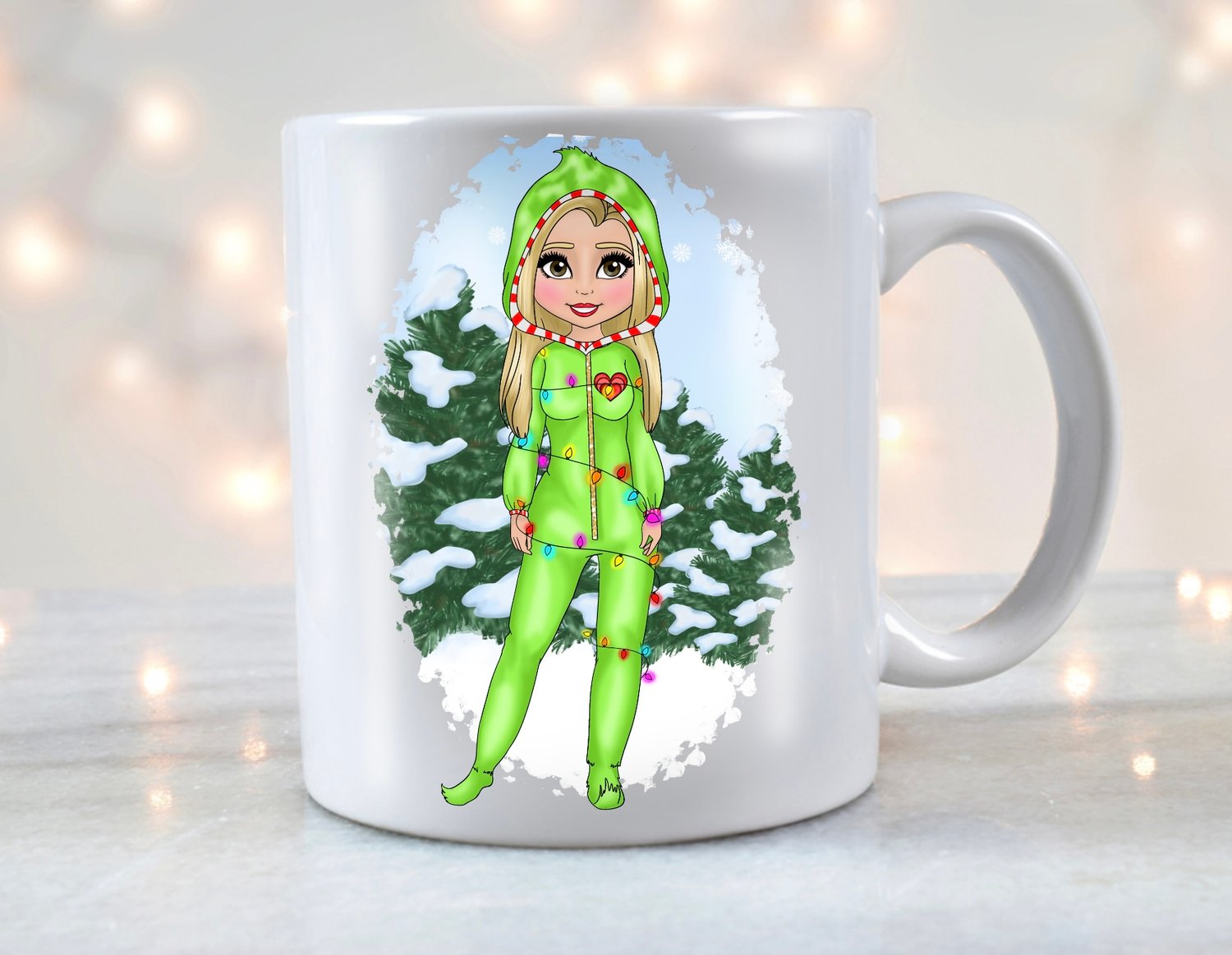 Instant digital download of our Green Christmas Onesie Women’s Doll Character Bundle PNG (96 PNG’s)