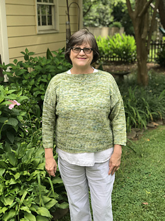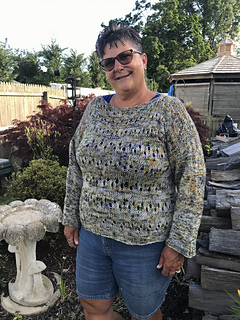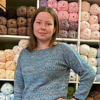 LLL is knit in the round from the bottom up with the eyelet pattern in front and back. At the underarms, you switch to working back and forth, completing the front and back separately, and then joining with a 3 needle bindoff at the top (which is EASY - don’t be intimidated and there is a video link.) You then pick up and knit the sleeves in the round from the top down. There is not top collar to do - it is already done!