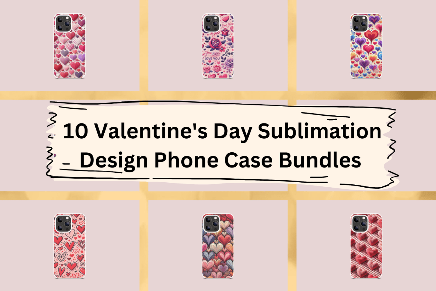 Sublimation Design: 10 Valentine's Day Phone Case Bundles - High-Quality 300 DPI Digital Download