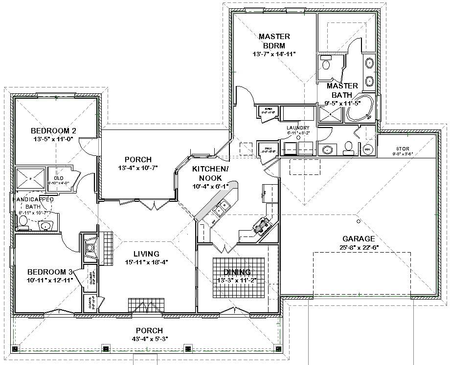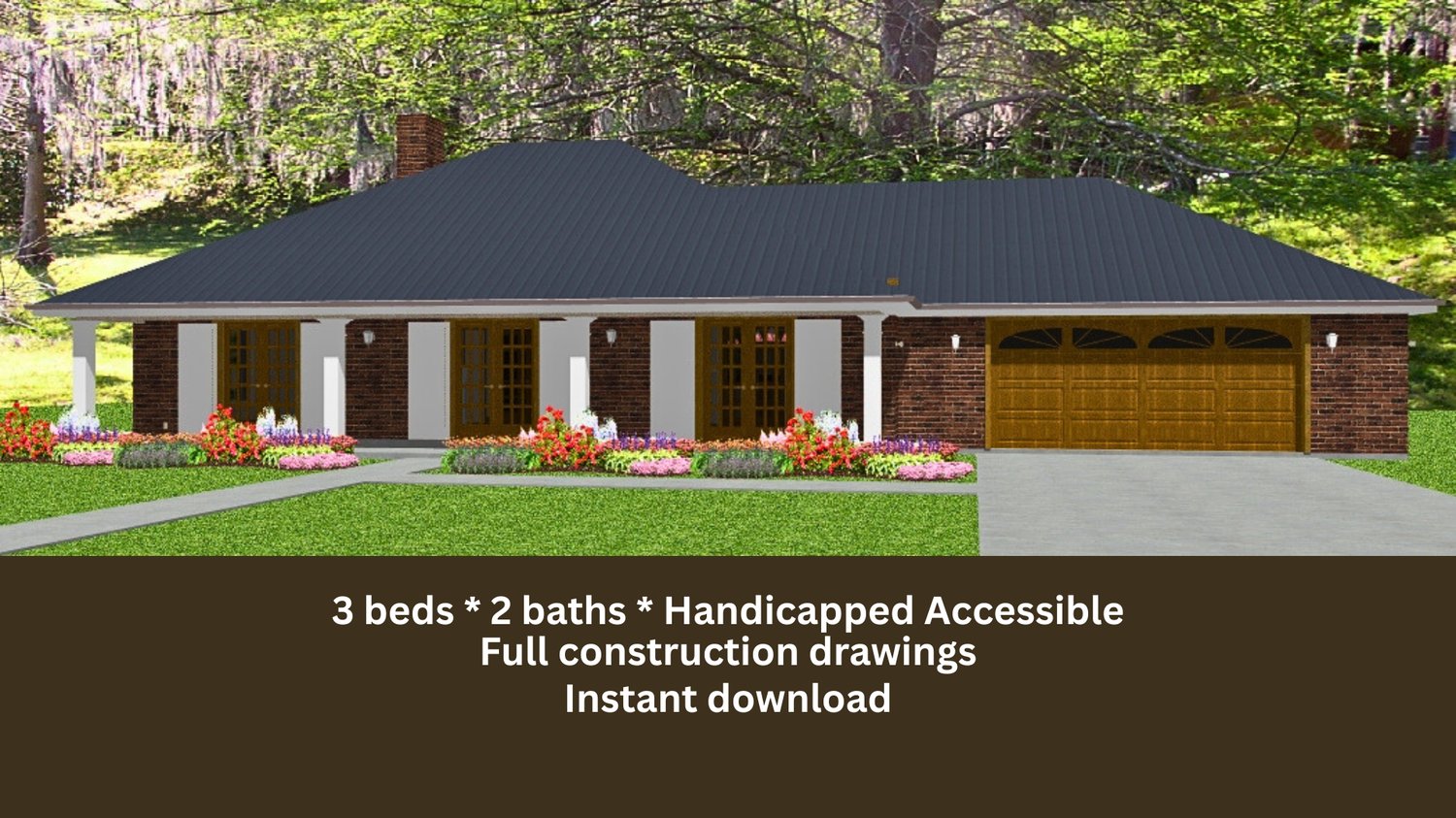 Natalie Ranch House Plan: 3 Bed, Handicapped Accessible| 1862 sq ft (PDF Download)