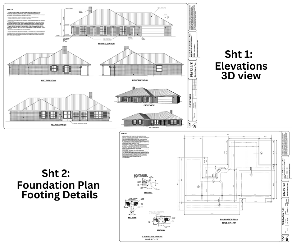 Your full construction blueprint set includes everything needed for permitting and building (PDF format, 24”x36”):