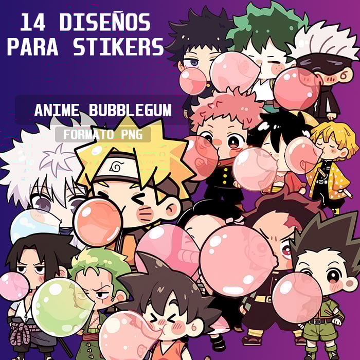 Pack of 14 Bubblegum-style sticker designs in PNG format. Perfect for custom stickers, printing, sublimation, DTF, DTG, and more. Instant digital download, ready to use for all your creative projects.