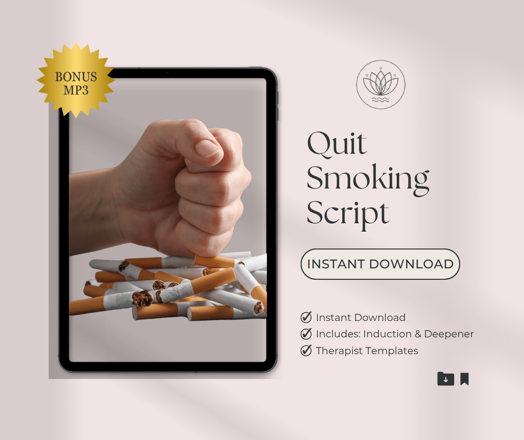 This comprehensive script leads clients through a powerful process, starting with a calming induction, deepening relaxation, and guiding them to release cravings, triggers, and habits tied to smoking.