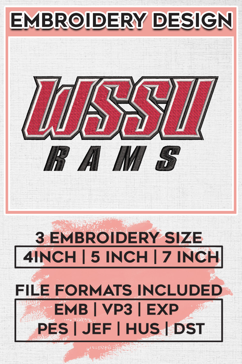 WSSU Rams College Football Team Logo Embroidery Designs, NCAA Winston Salem State Rams Machine Embroidery Files, NCAA Logo embroidery designs, Ncaa Winston Salem State Logo, Digital Download
