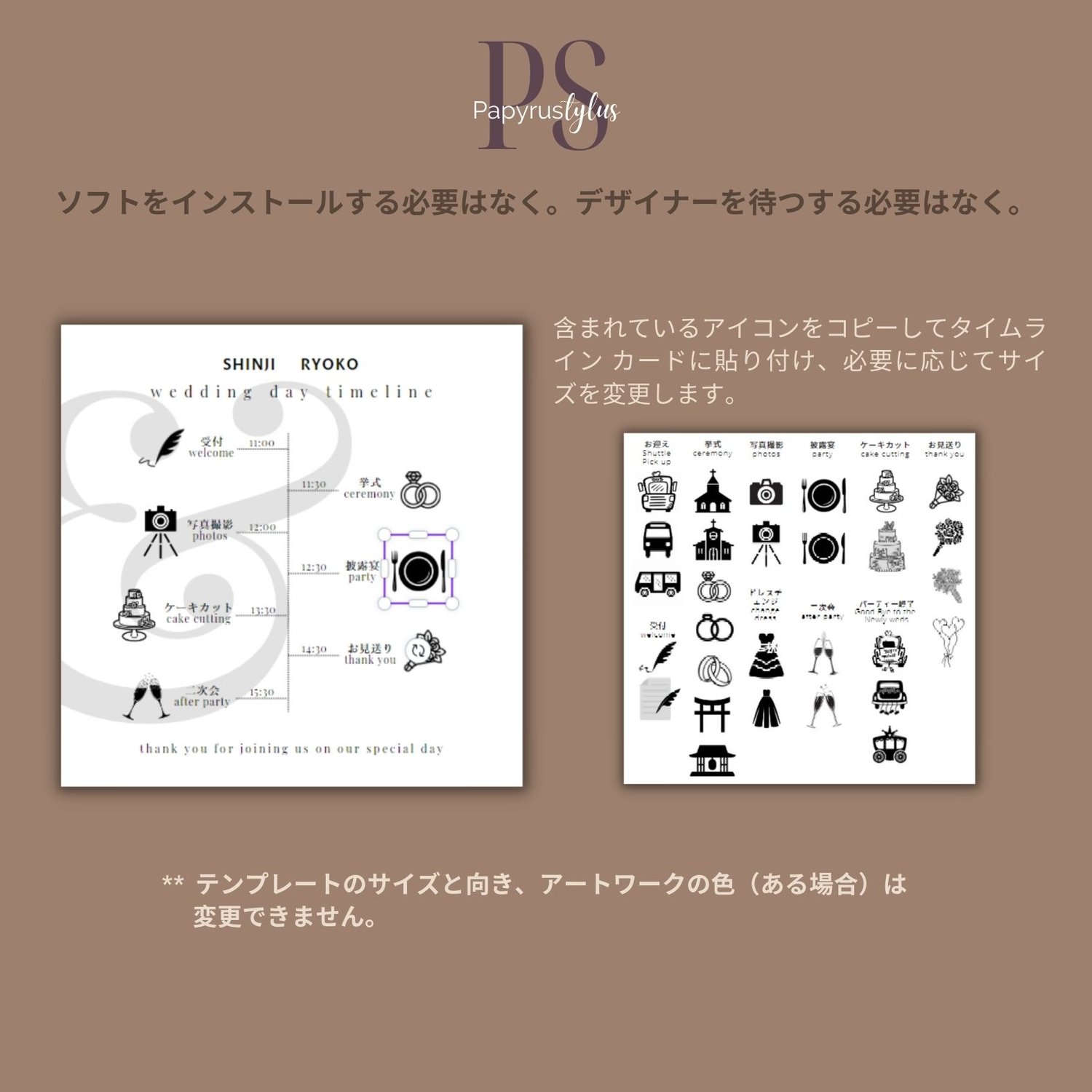 このタイムライン カードは、巨大な「&」が特徴の招待状カードに付属するように設計されています。 VALERIEシリーズをご覧ください。