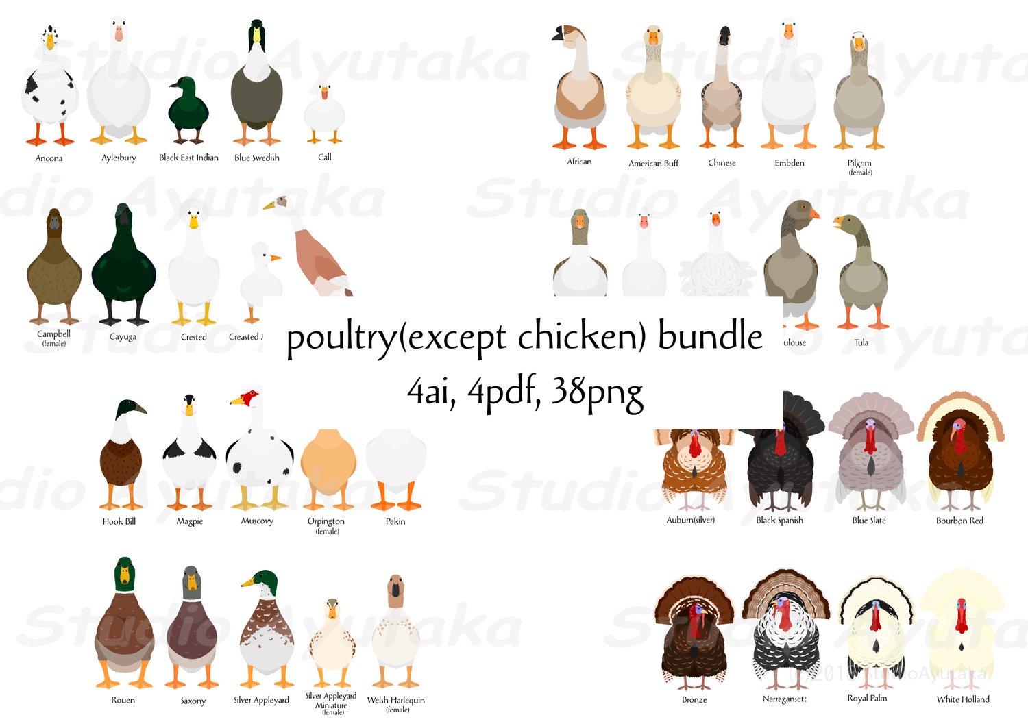Bundle of 38 poultry(except chickens) Cliparts