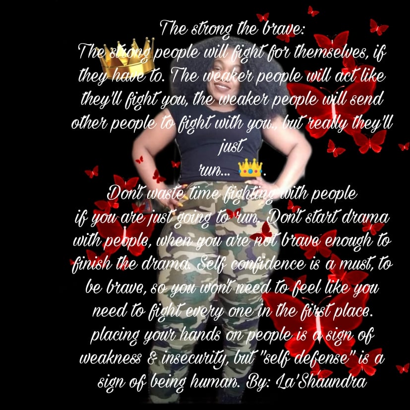 The real fighters will not fight because of insecurity or low self esteem, but the real fighters will fight to defend their own self & people they care for & love because they are strong.
