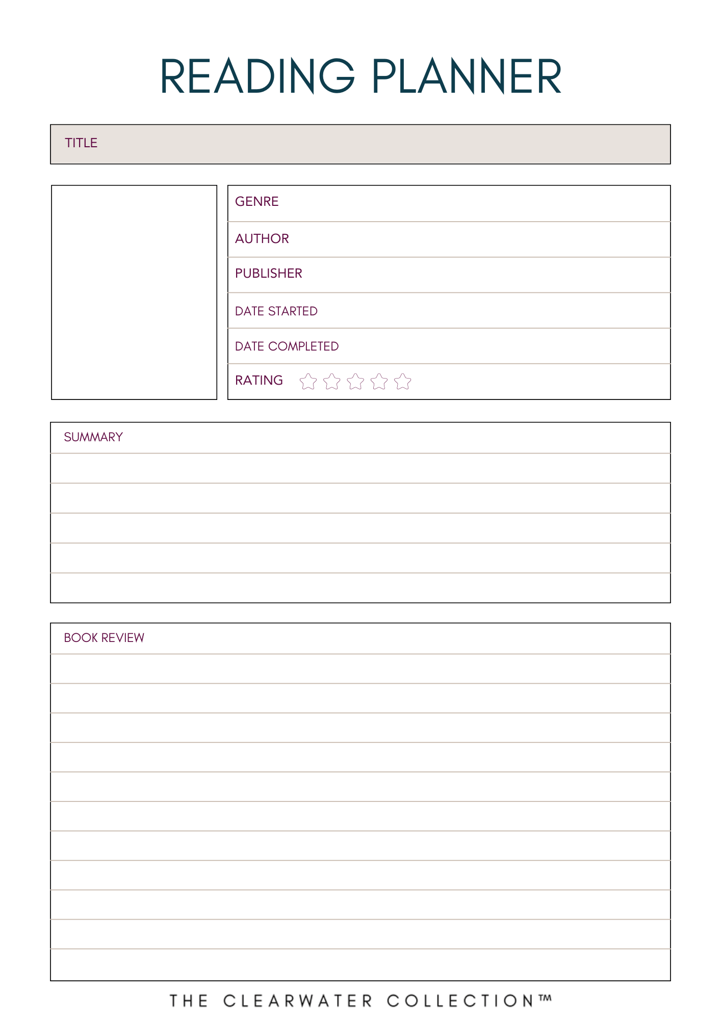 📚 Simple Layout: Easy-to-use format to jot down titles, authors, start and finish dates, and your thoughts on each book.