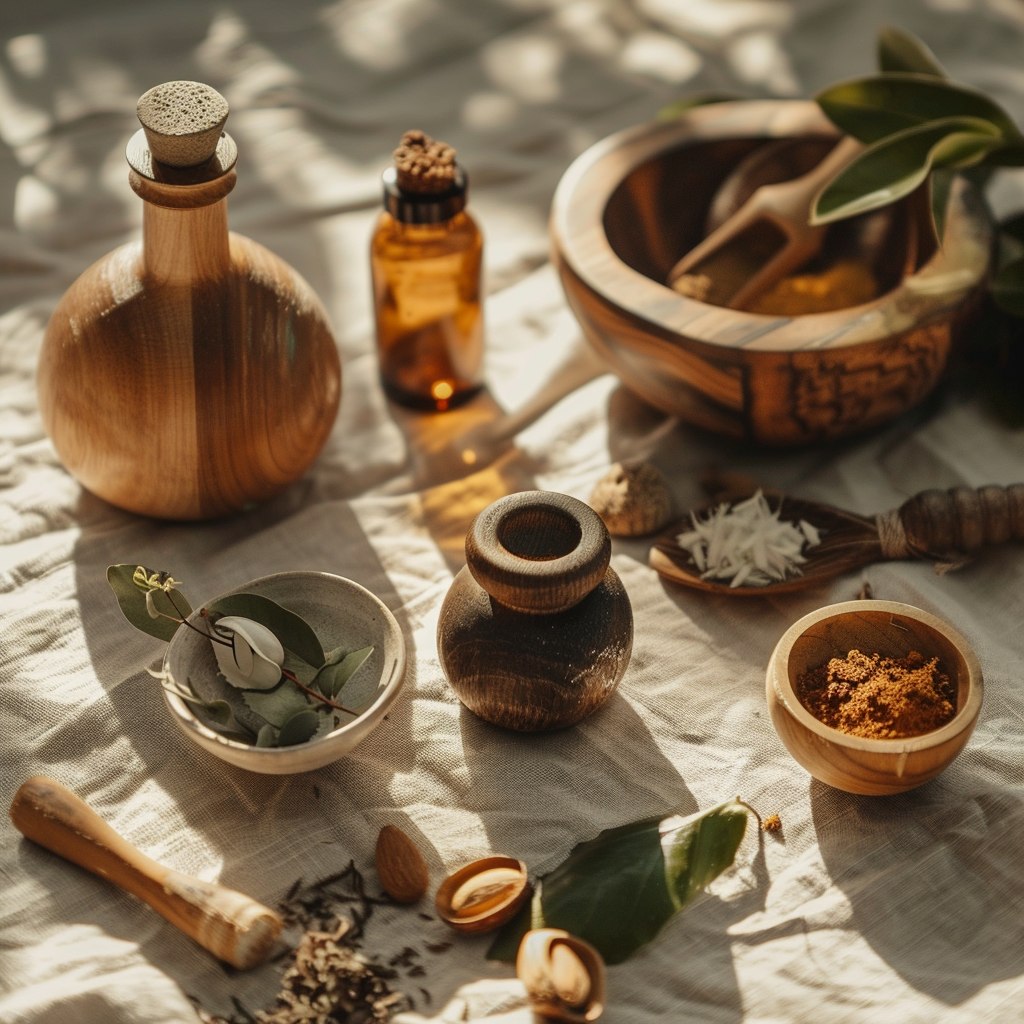 Ayurvedic Ingredients Flatlay – Luxury Skincare Visual