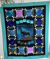 You can use a panel with one large picture (center) and four small pictures (corners), as in the 62” x 74” cover quilt,