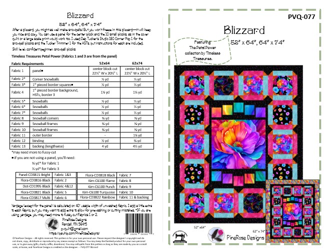 The other fabric is Timeless Treasure's Petal Power, which begins shipping to quilt stores in November 2025. That panel for that fabric is a single picture, but I used the center of the panel as the 'large picture' and the remaining panel for the small squares above and below the center.