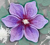 The Clematis uses a few different techniques in its creation. These include thread painting, short row crochet and loop stitch.