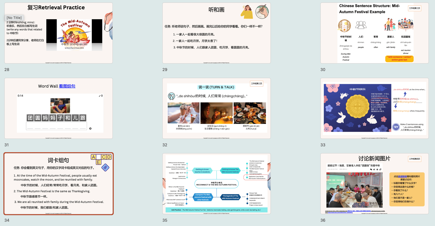 这套精心设计的中秋节单元,专为中文二学生打造,帮助学生在语言学习中深入了解中国传统文化。