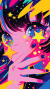 Brighten up your screen with "Pop Up Pink Girl Star." This lively artwork features an energetic anime girl with vibrant pink hair, surrounded by a burst of colorful stars and playful elements. Her joyful expression and dynamic pose capture a sense of fun and excitement, making this piece perfect for fans of bold, upbeat anime aesthetics. Add a pop of color and charm to any screen or space with this image, sure to inspire smiles and a touch of star-powered magic.