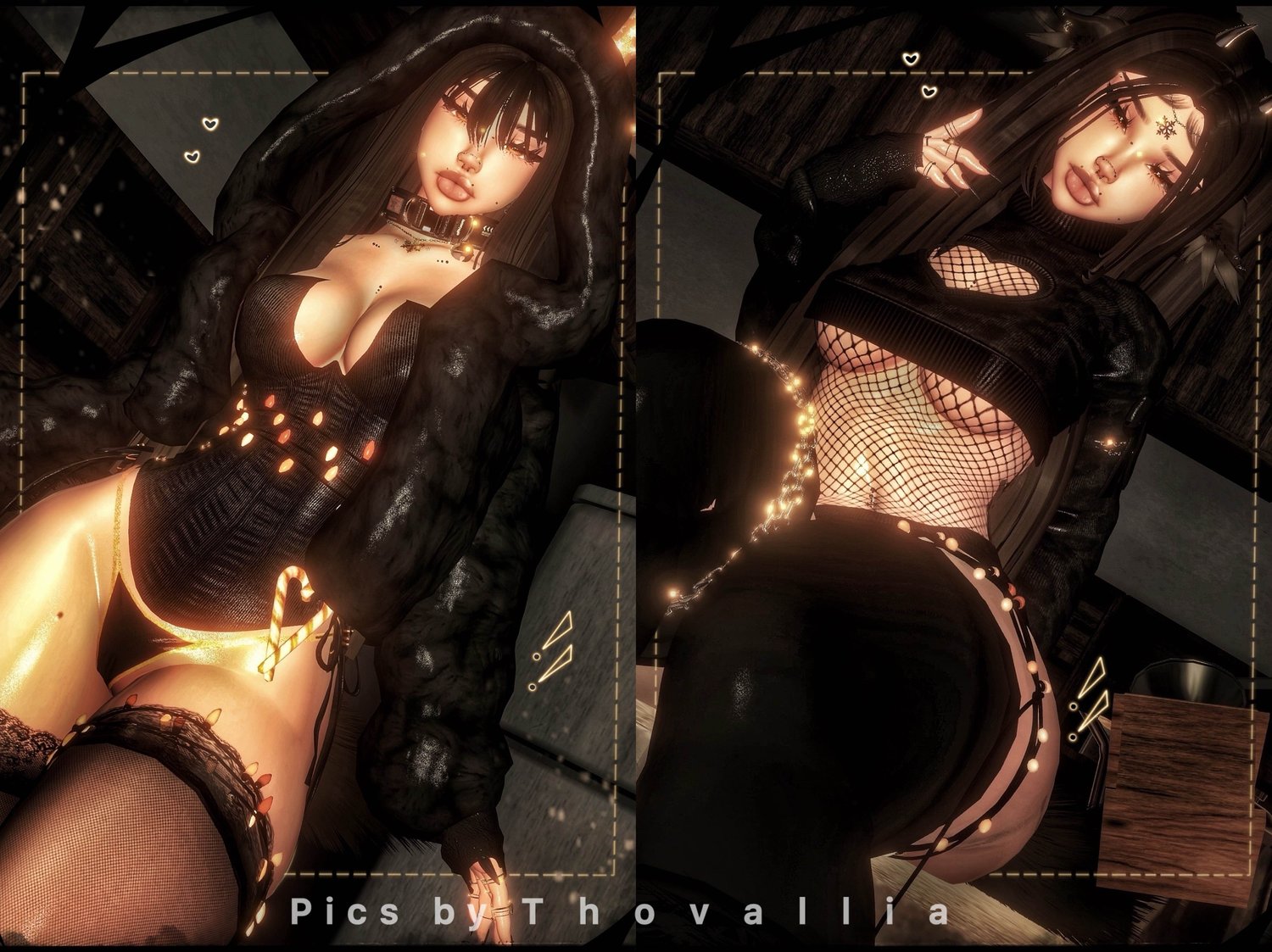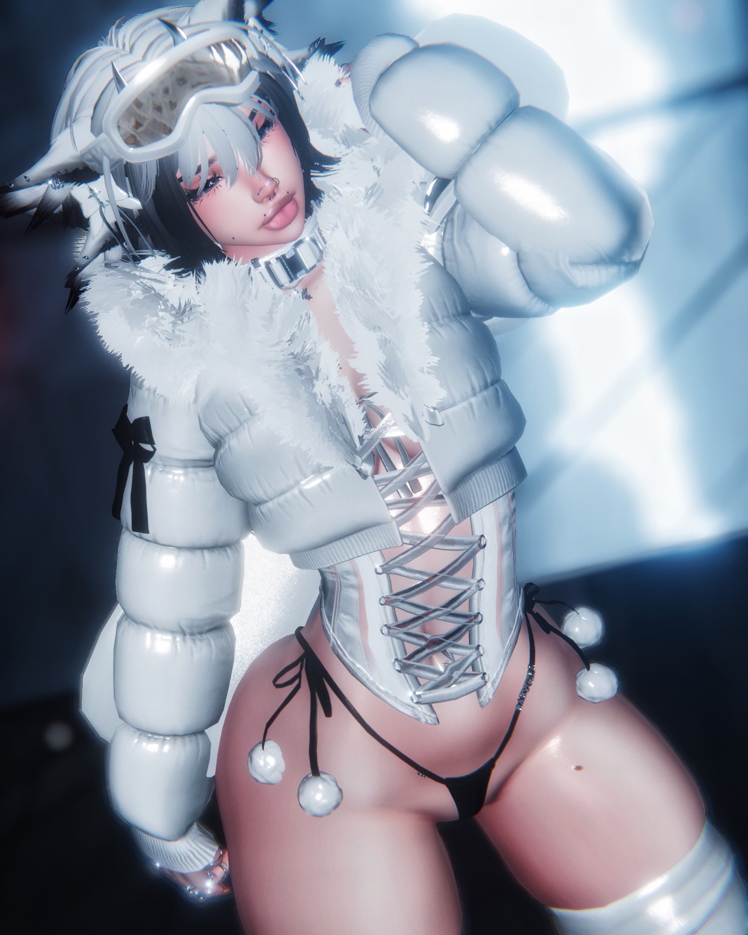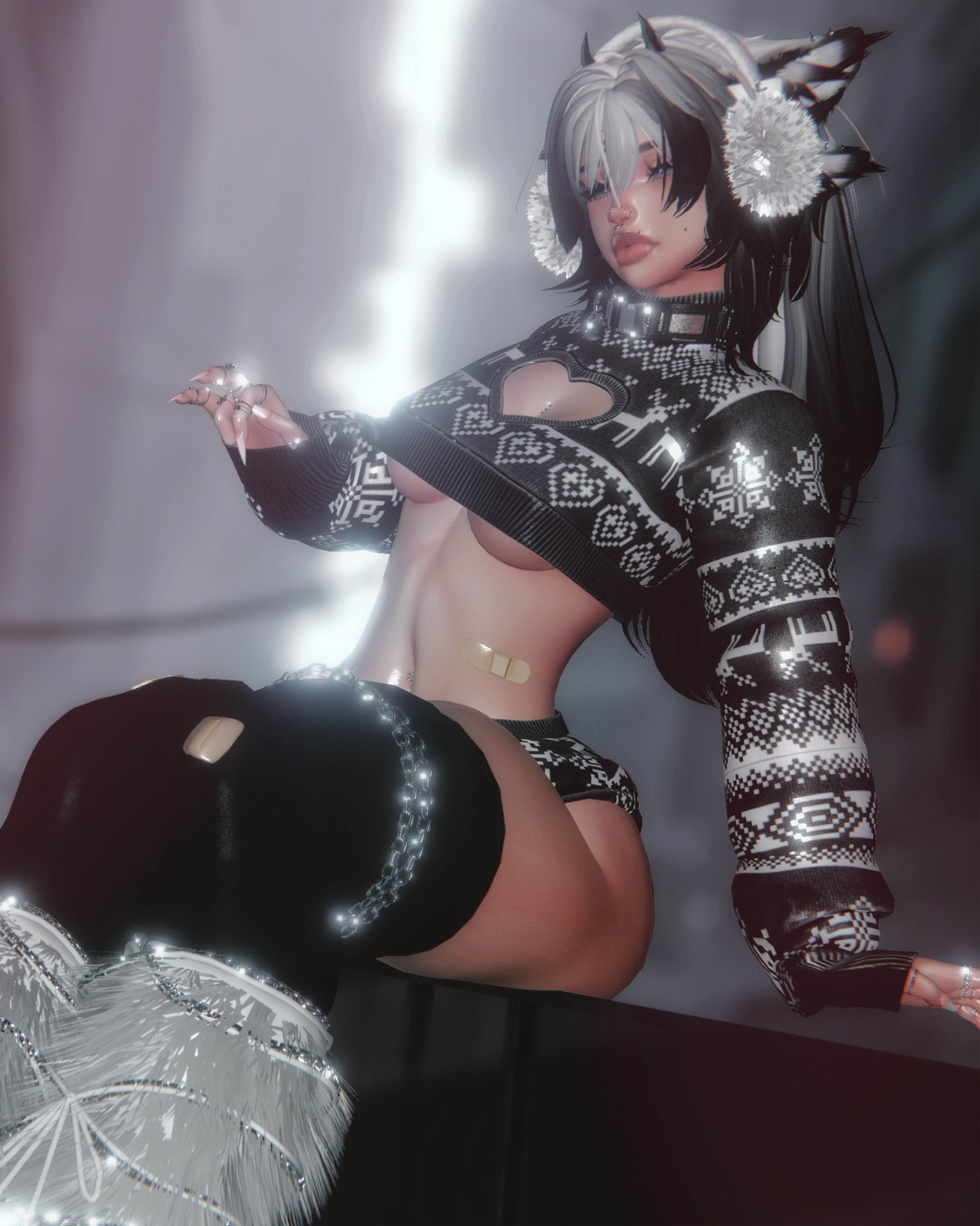 Ski set, Sweater top & shorts, Corset 1, Stockings, lace panties
