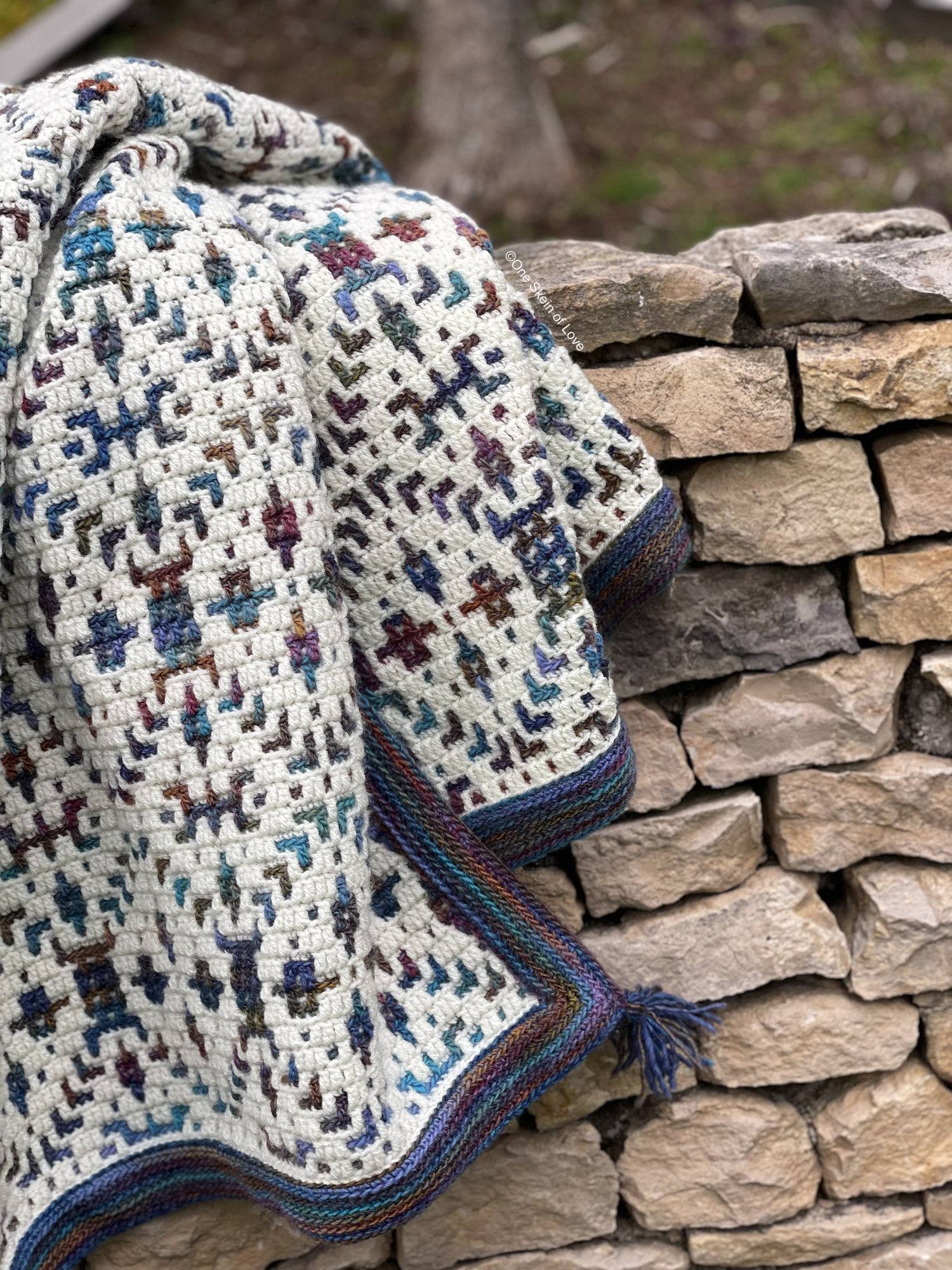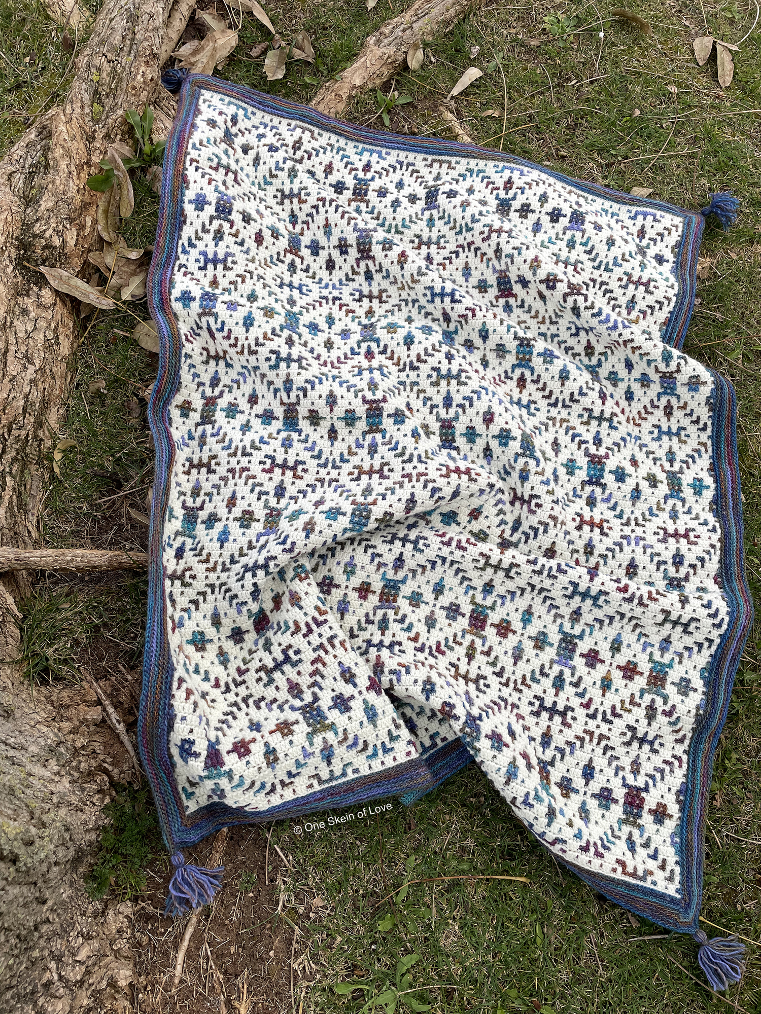 The pattern has pictures to guide you through every row and round. It has charts for blanket body and border. You can play with the patterns or repeats to create a bigger or smaller blankie or to create other house decor itens.
