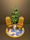Save a Chair double set is laser cut of birch and hand painted. This set comes with the large rug with rememberance saying, Two rocking chairs, a window with two cardinals, and a Christmas tree. Measures 8.5x11" and can be purchased painted or Blank