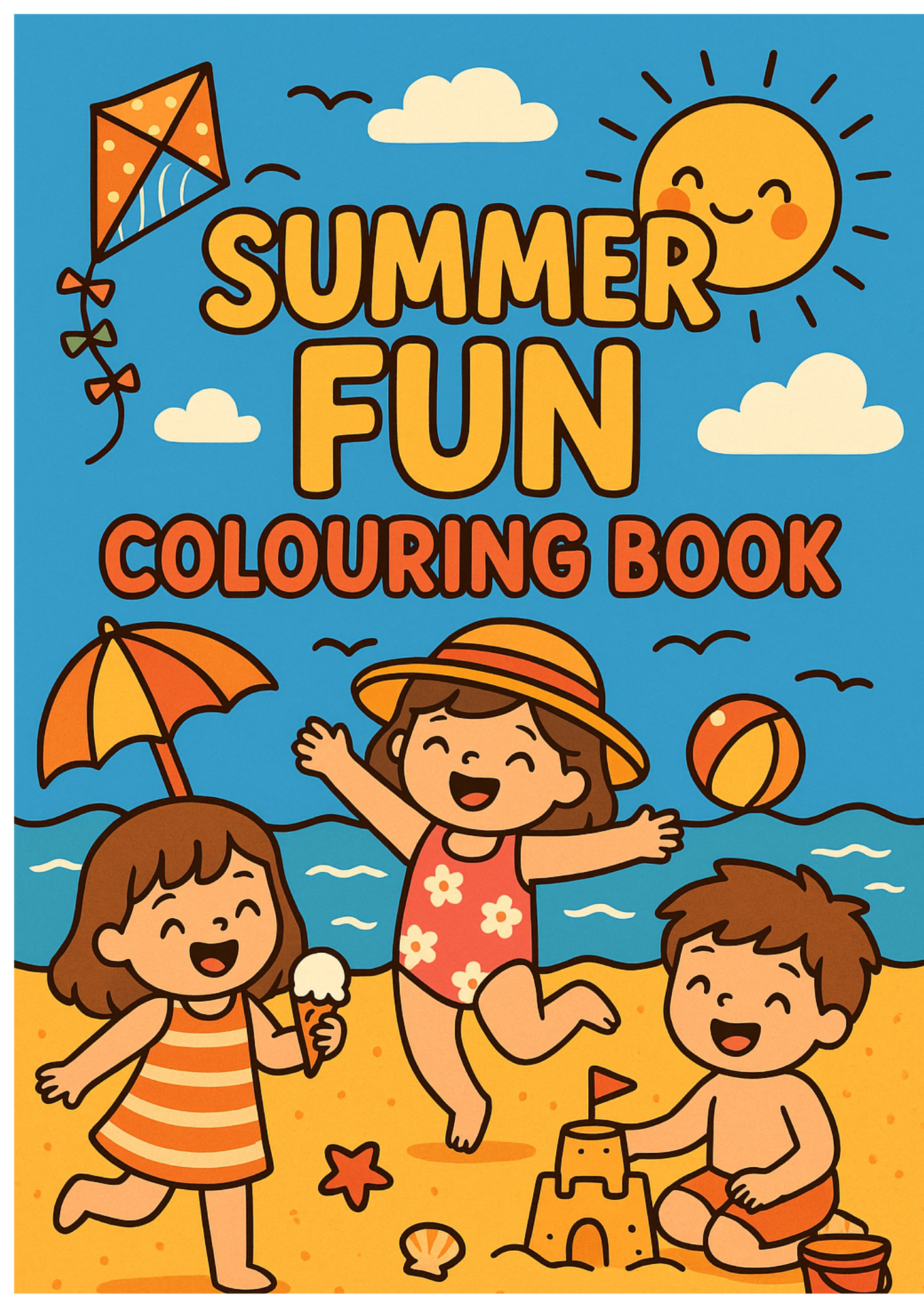 Get ready for giggles and creativity with this cute and simple summer-themed colouring book, perfect for children ages 5 and up. With 10 easy-to-colour pages featuring happy ice creams, beach days, friendly suns, and tropical treats, this book will keep kids entertained for hours.