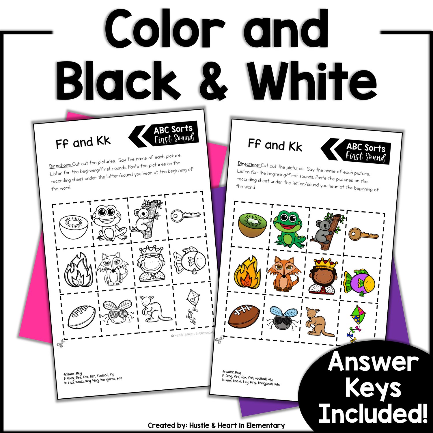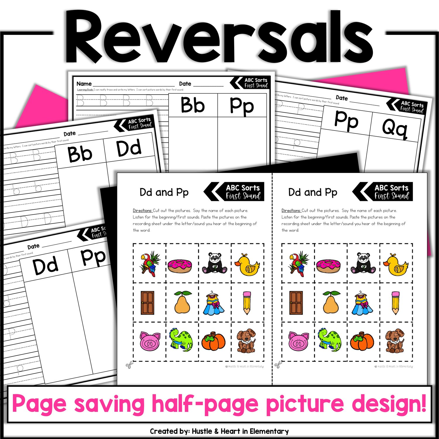 Each sort contains handwriting practice as well as a paper saving half sheet color or black and white alphabet pictures to cut out.