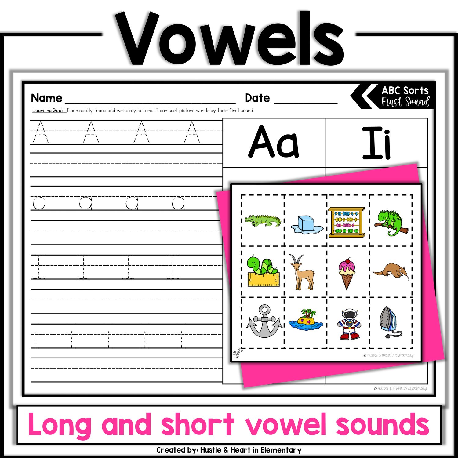This set includes all letters of the alphabet with many letter sort variations including tricky reversals and beginning vowels. Please note that the vowel pictures utilize both their long and short sounds.