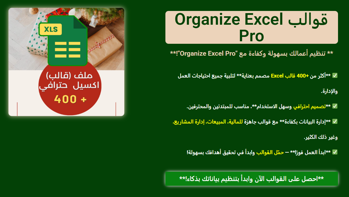 Organize Excel Pro 400+ اكثر من 400 قالب اكسيل احترافي