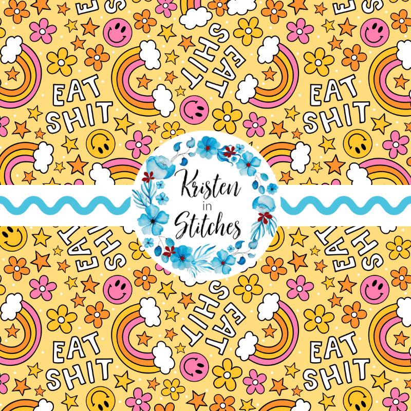 Eat Shit Sarcastic Sweary Seamless Pattern, Rainbows and Flowers, Yellow